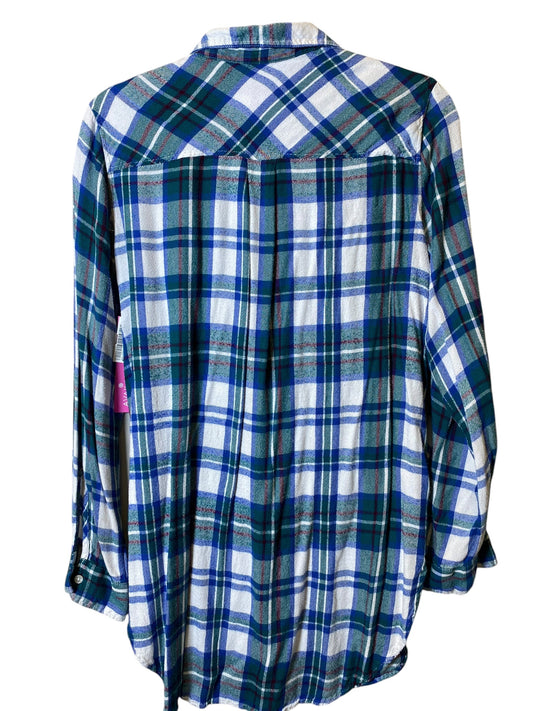 Blouse Long Sleeve By Express In Plaid Pattern, Size: L