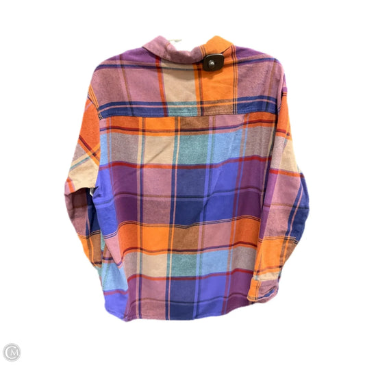 Blouse Long Sleeve By Old Navy In Plaid Pattern, Size: L