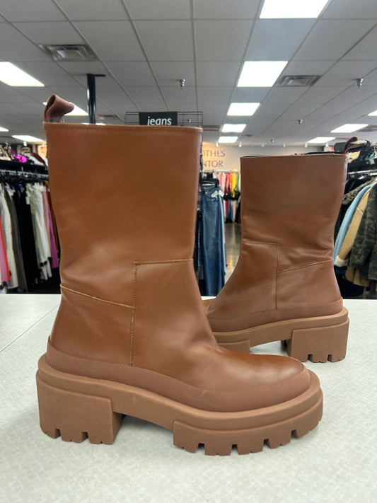 Boots Ankle Heels By Clothes Mentor In Brown, Size:9