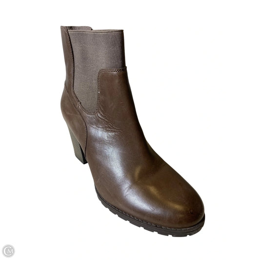 Boots Ankle Heels By Clarks In Brown, Size: 10