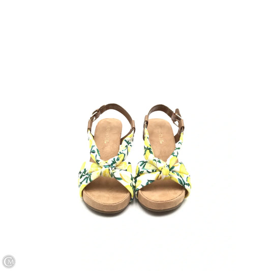 Sandals Heels Wedge By Aerosoles In Green & Yellow, Size: 8