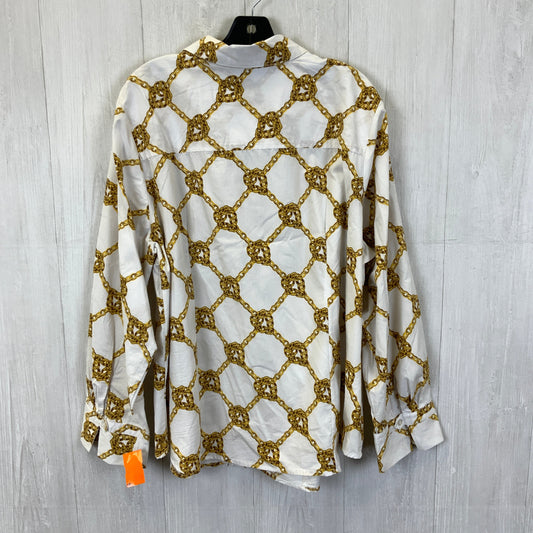 Top Long Sleeve By Ashley Stewart In White & Yellow, Size: 3x