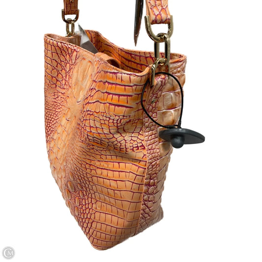 Amelia Croc Embossed Leather Bucket Bag Handbag Designer By Brahmin, Size: Medium