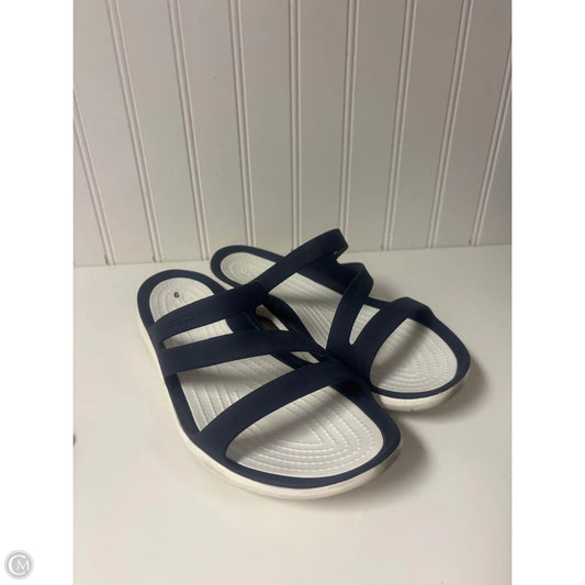 Sandals Flats By Crocs In Blue & White, Size: 9