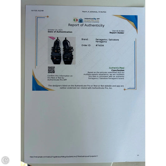 Sandals Luxury Designer By Ferragamo In Black, Size: 8.5