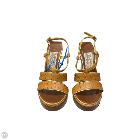 Sandals Luxury Designer By Ferragamo In Brown, Size: 5.5