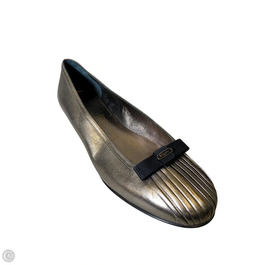 Shoes Luxury Designer By Ferragamo In Gold, Size: 9.5