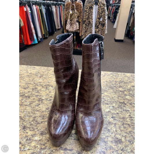 Boots Ankle Heels By Guess In Brown, Size: 8
