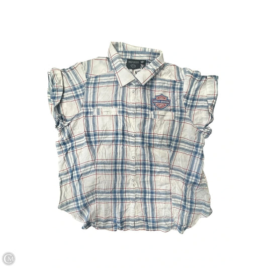 Blouse Short Sleeve By Harley Davidson In Blue & Red & White, Size: 2x