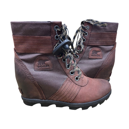 Boots Ankle Heels By Sorel In Brown & Grey, Size: 10