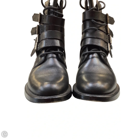 Boots Luxury Designer By Yves Saint Laurent In Black & Silver, Size: 7.5(38)