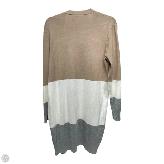 Sweater Cardigan By Areve In Tan & White, Size: L