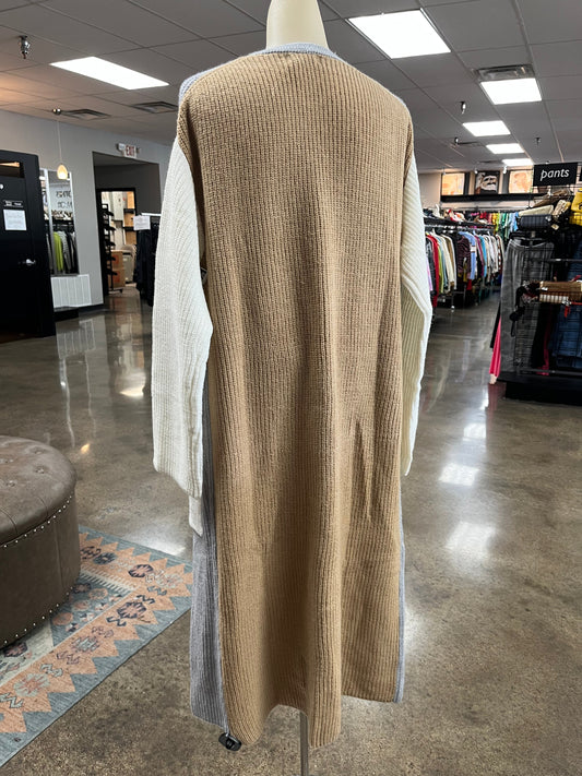 Sweater Cardigan By Elan In Grey & Tan, Size:S
