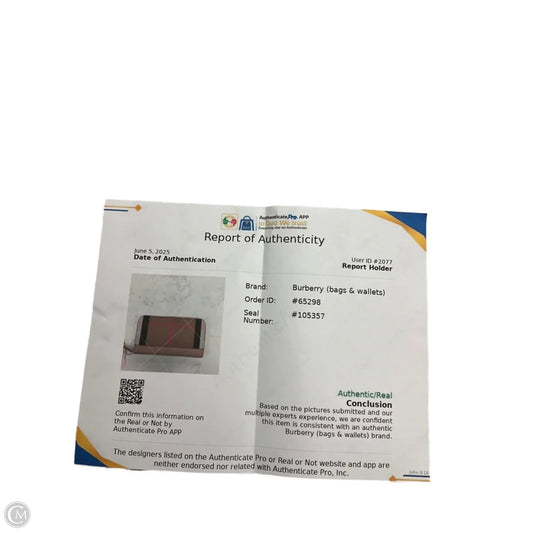 Wallet Luxury Designer By Burberry, Size: Large