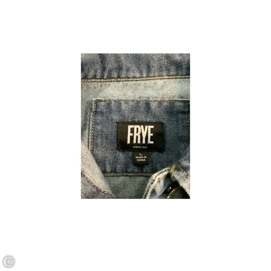 Jacket Designer By Frye In Blue Denim, Size: L