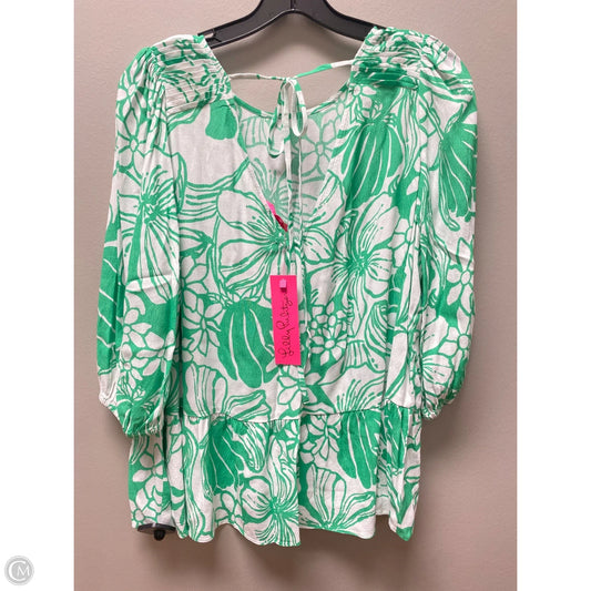 Top Short Sleeve Designer By Lilly Pulitzer In Green & White, Size: L