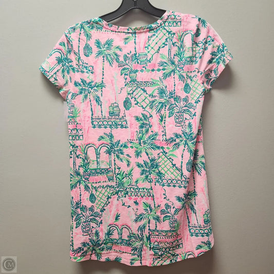 Top Short Sleeve Designer By Lilly Pulitzer In Green & Pink, Size: S