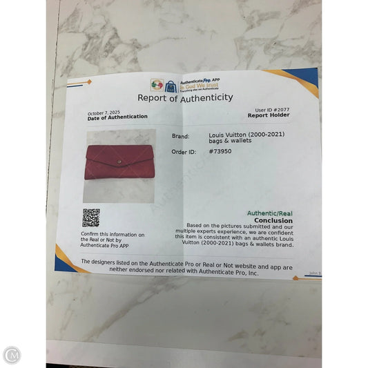 Wallet Luxury Designer By Louis Vuitton, Size: Large
