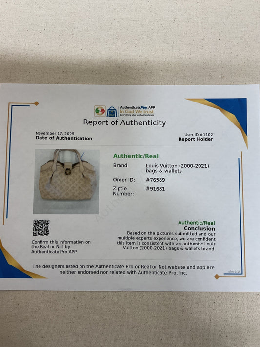 Handbag Luxury Designer By Louis Vuitton In Cream, Size:Medium