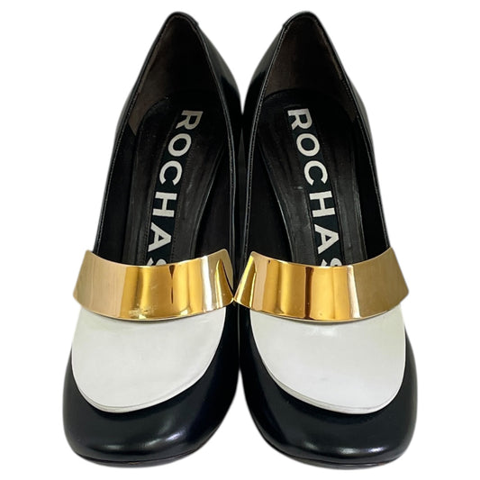 Shoes Heels Block By ROCHAS In Black & White, Size:8