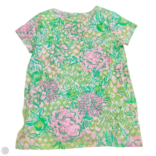 Top Short Sleeve Designer By Lilly Pulitzer In Green & Pink, Size: S