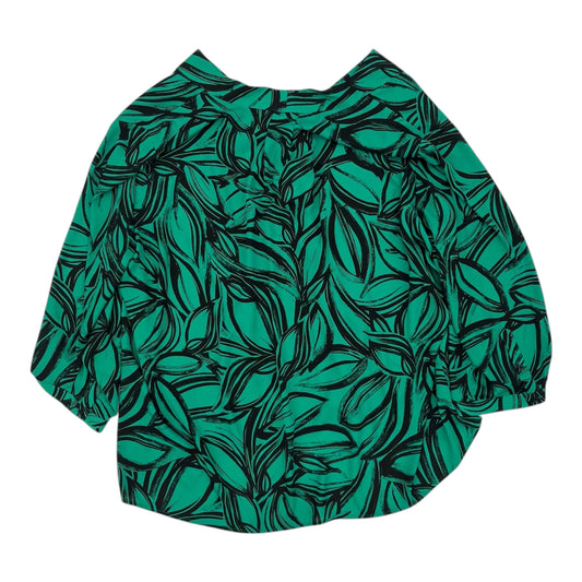Blouse 3/4 Sleeve By Investments In Green, Size:3X