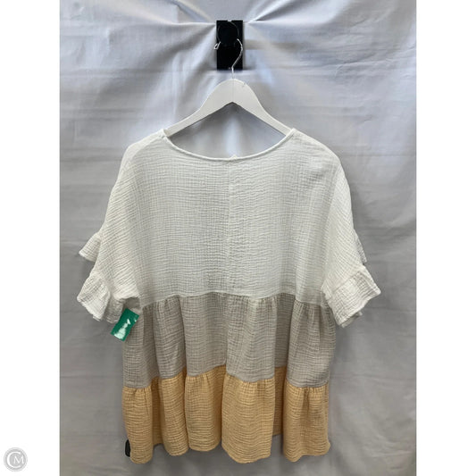 Top Short Sleeve By Lovely Melody In White & Yellow, Size: 2x