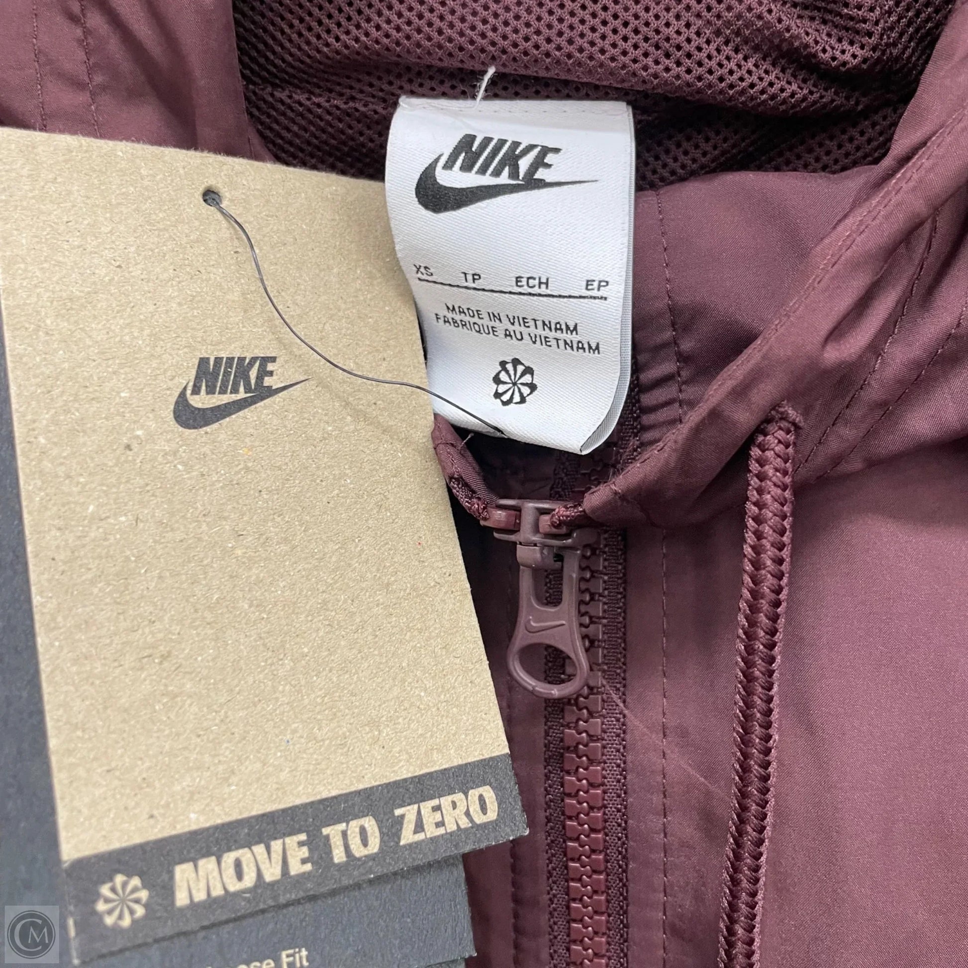 Nike Athletic Jacket in XS, Maroon. Lightweight, breathable fabric for optimal performance. Stay stylish and comfortable during your workouts.