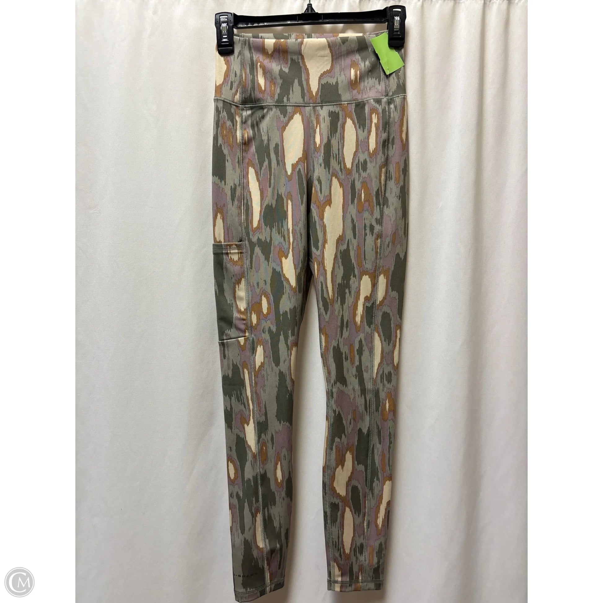 Columbia green athletic leggings, size S, embody performance and style.
