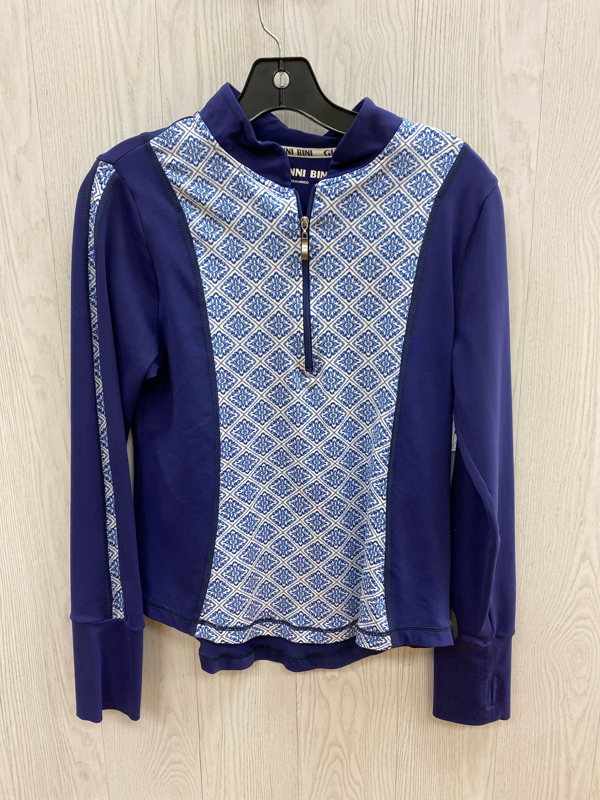 Athletic Top Long Sleeve Collar By Gianni Bini In Blue & White, Size: L