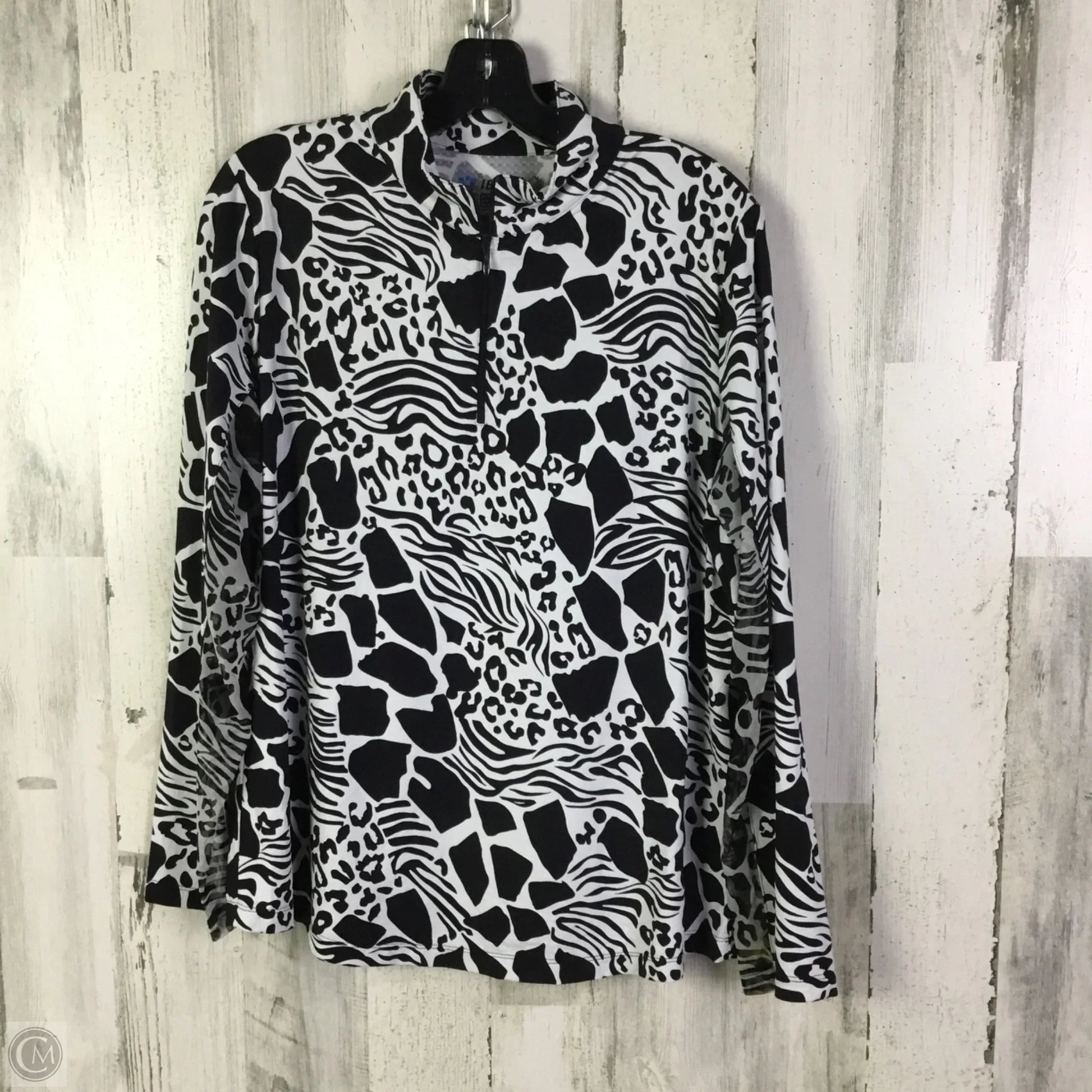 Athletic Top Long Sleeve Collar By Ibkul In Black & White, Size: Xl