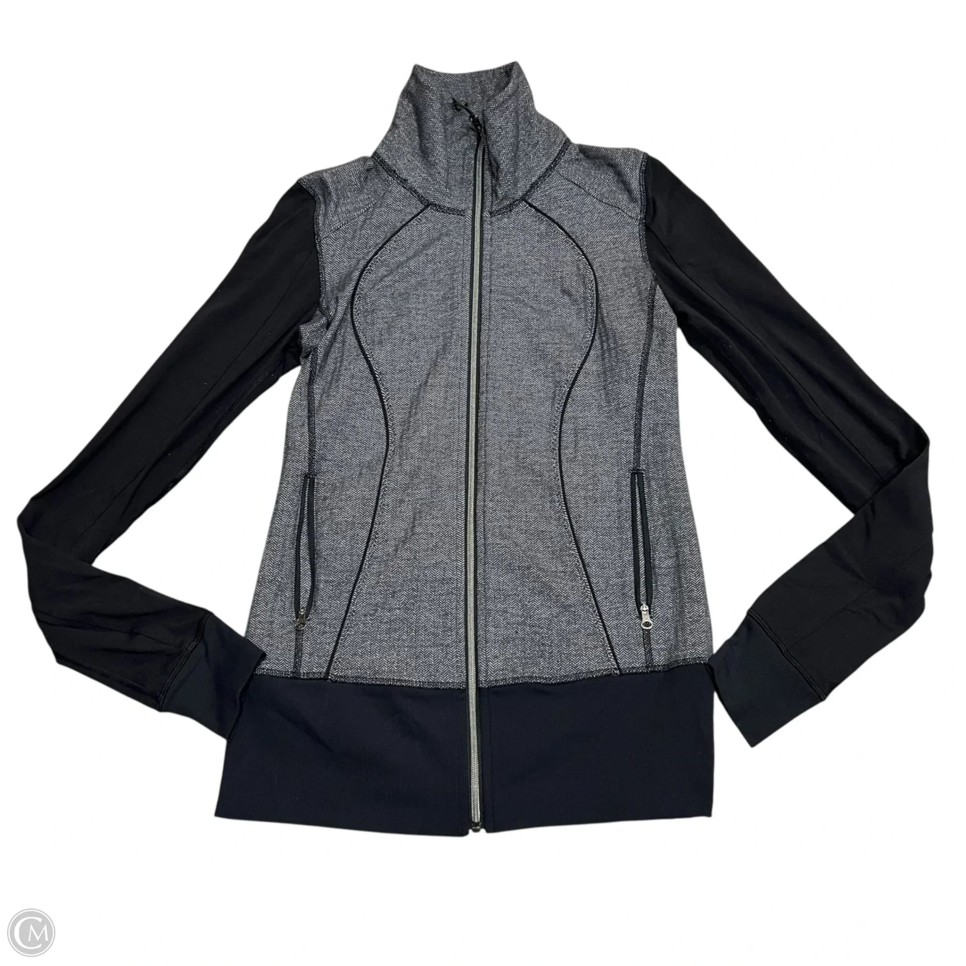 Athletic Top Long Sleeve Collar By Lululemon In Black & Grey, Size: S