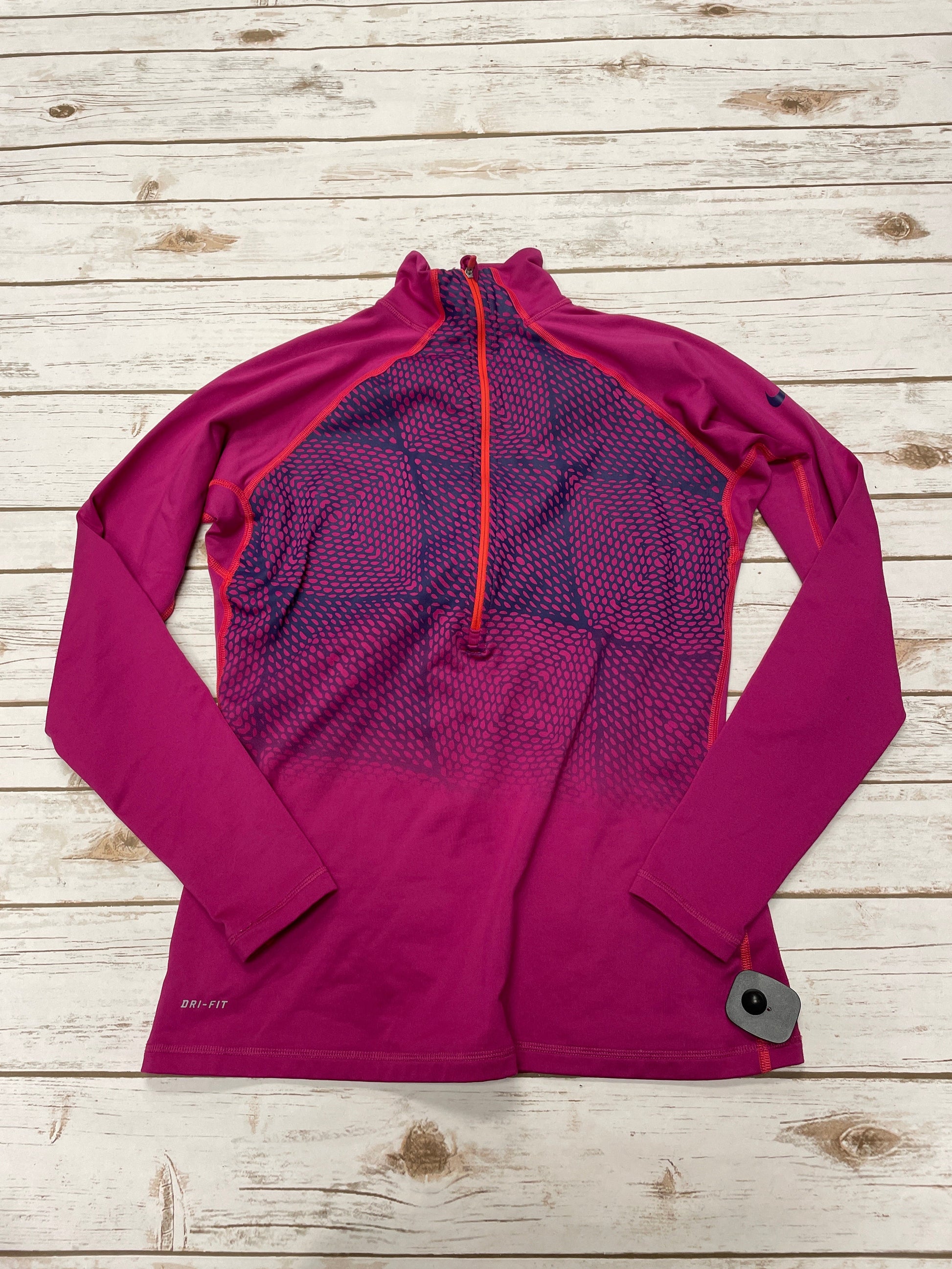 Athletic Top Long Sleeve Collar By Nike In Pink, Size: L