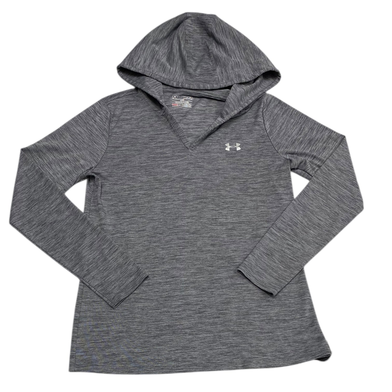 Athletic Top Long Sleeve Hoodie By Under Armour In Grey, Size: M