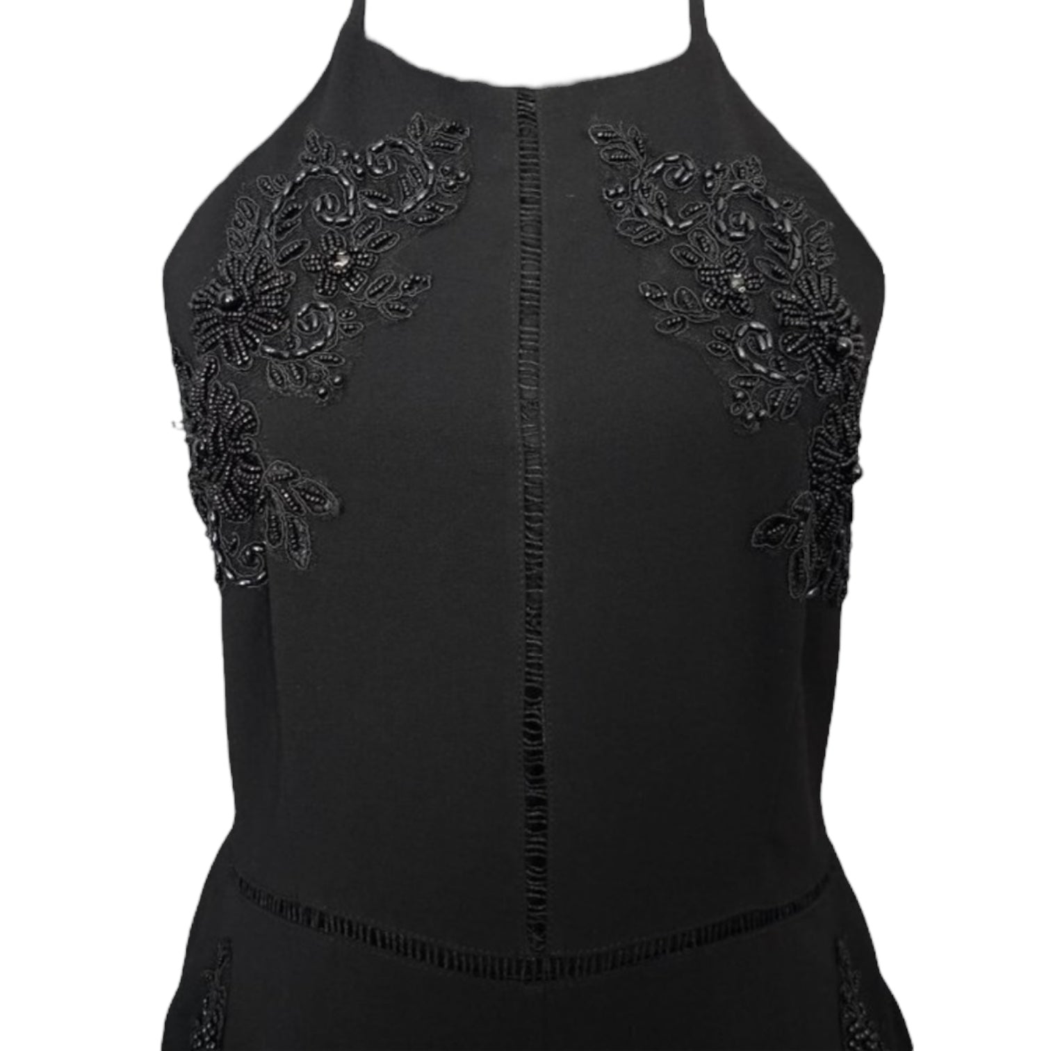 Beaded Halter Wide Leg Cropped Jumpsuit By Gianni Bini In Black, Size: M