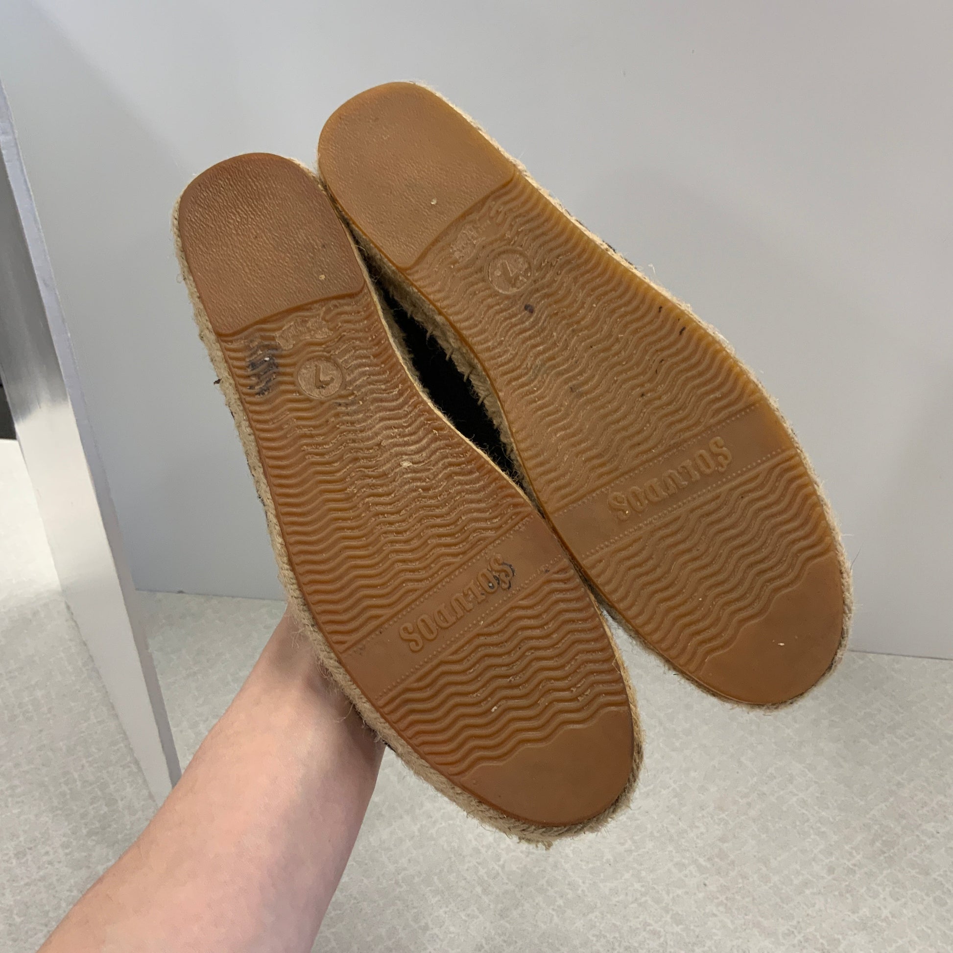 Black & Tan Shoes Flats Soludos, Size 7