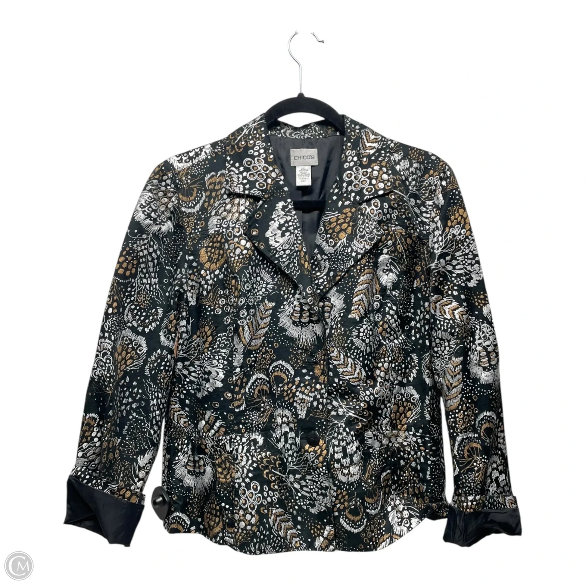 Blazer By Chicos In Black & Gold, Size: M
