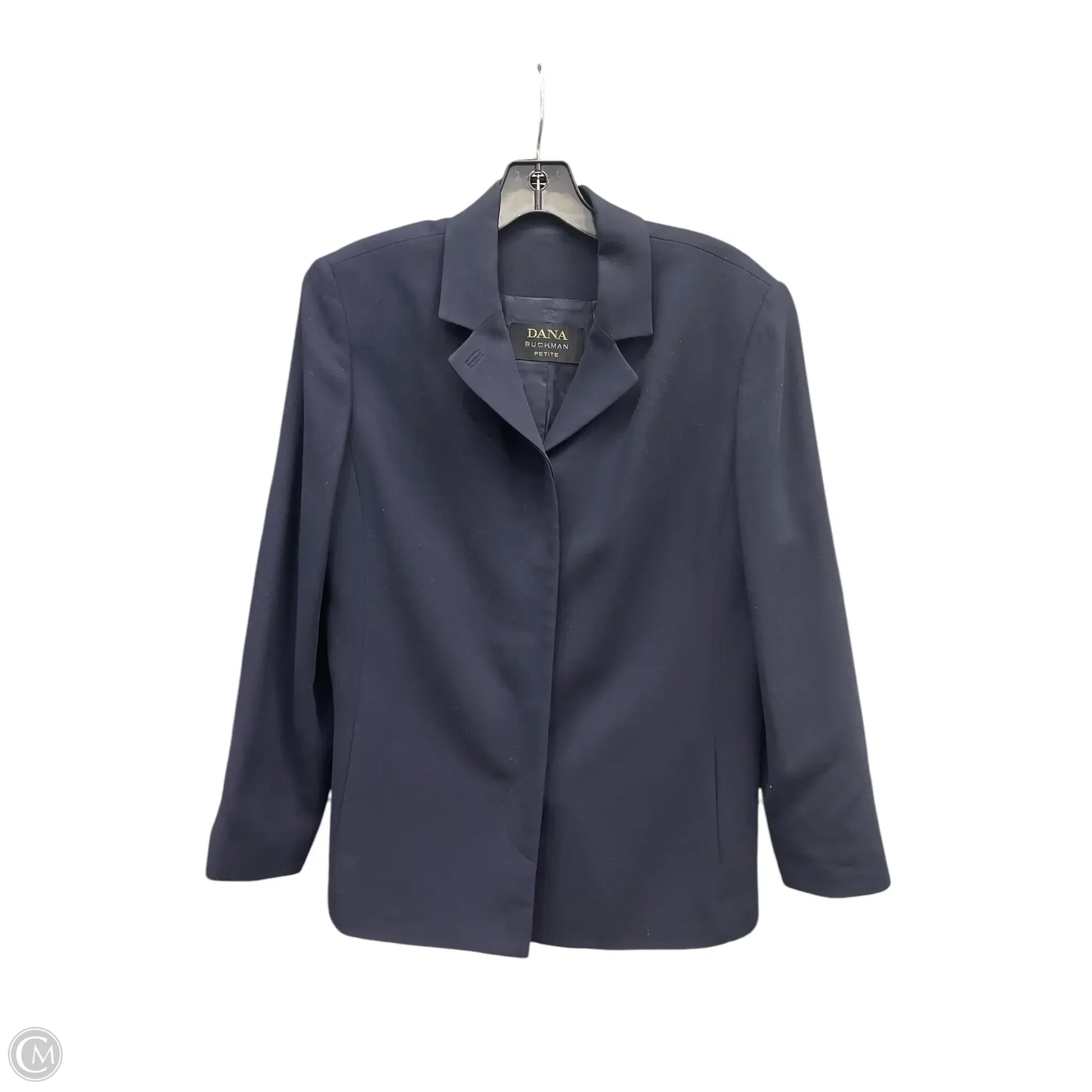 Navy Dana Buchman blazer, size 12P, exudes timeless sophistication. Tailored fit, rich color, and versatile wardrobe staple.