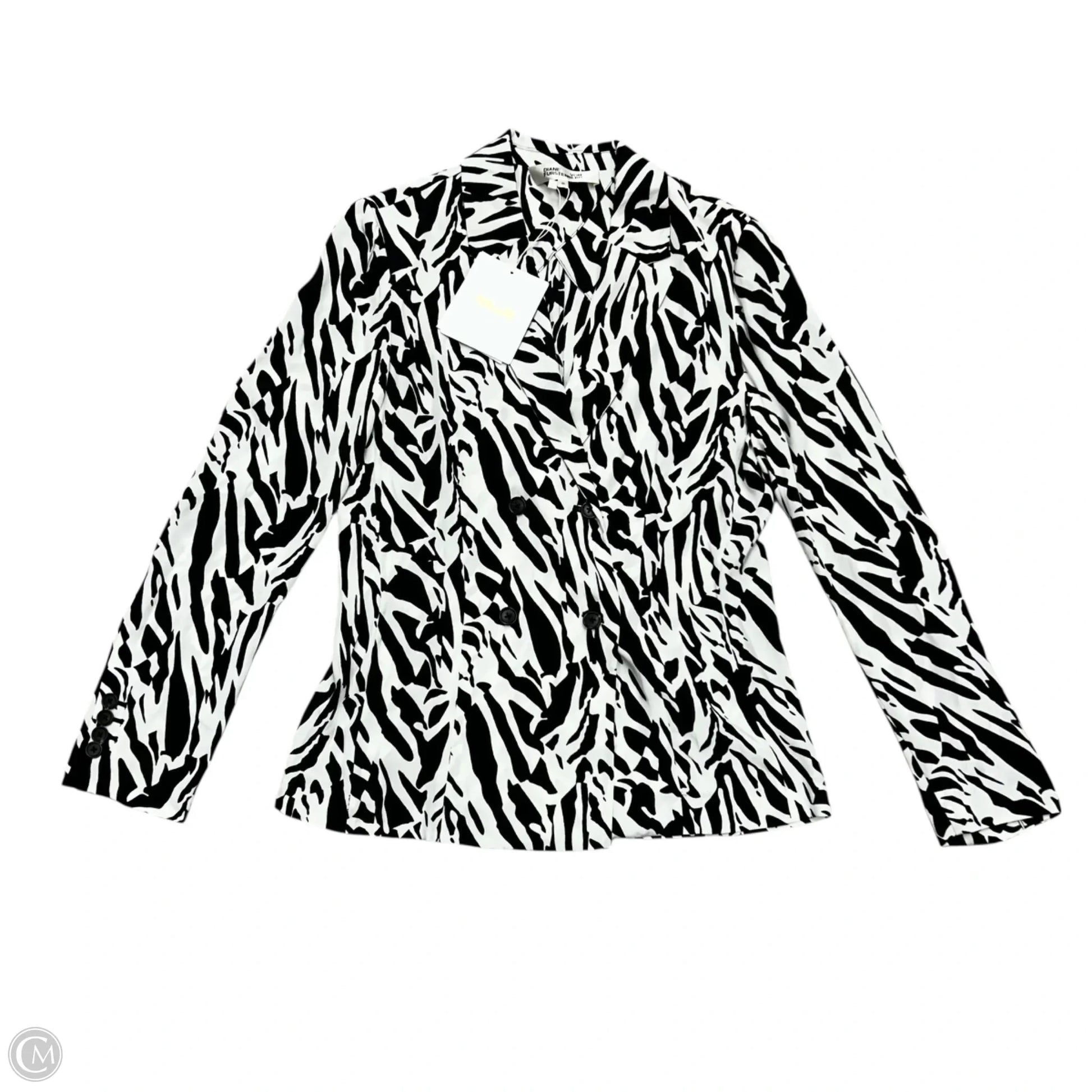 Blazer Designer By Diane Von Furstenberg In Black & White, Size: M