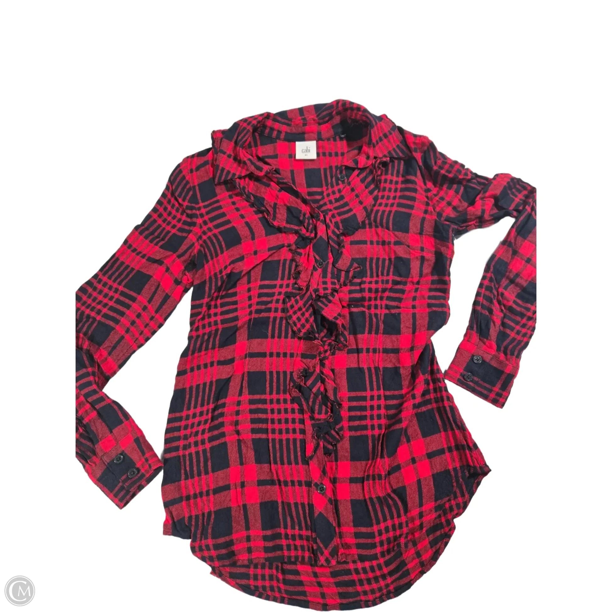 Blouse 3/4 Sleeve By Cabi In Plaid Pattern, Size: Xs