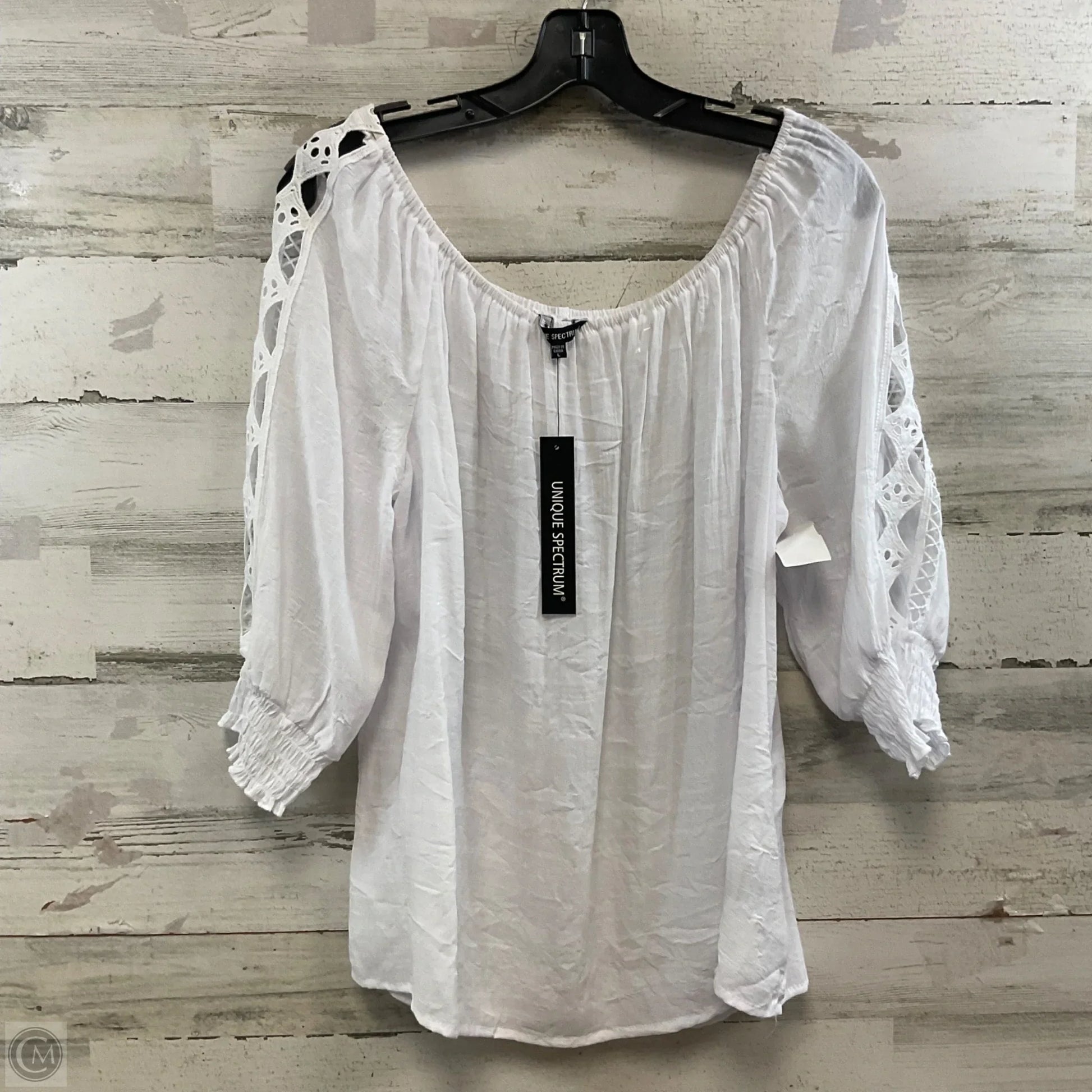 Blouse 3/4 Sleeve By Unique Spectrum In White, Size: L