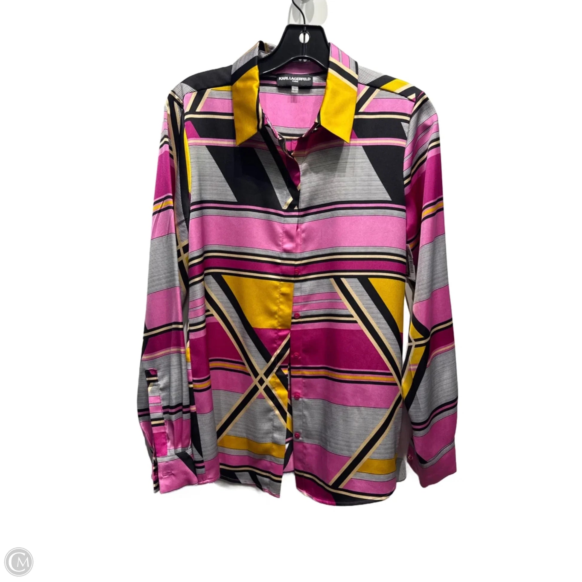 Blouse Designer By Karl Lagerfeld In Pink & Yellow, Size: S