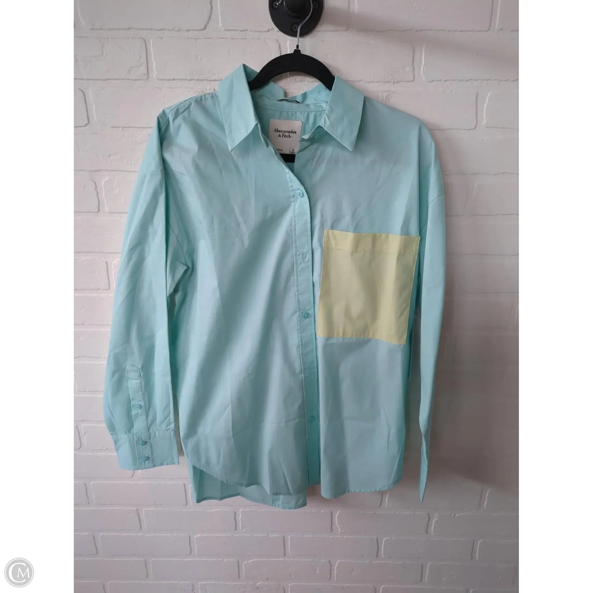 Experience effortless style with this Abercrombie & Fitch Long Sleeve Blouse in Blue & Yellow, Size S. Embrace chic comfort.