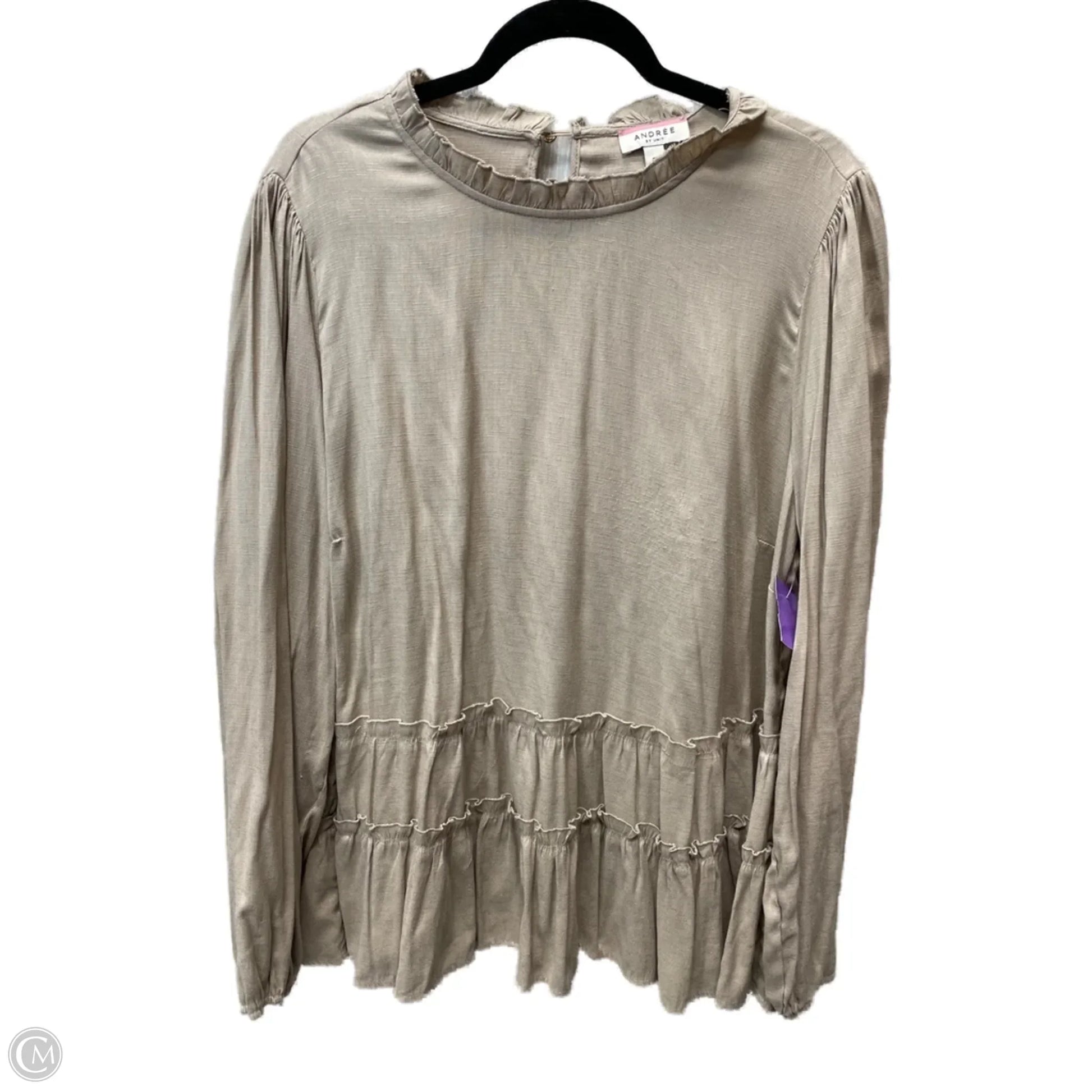 Blouse Long Sleeve By Andree By Unit In Tan, Size: 3x