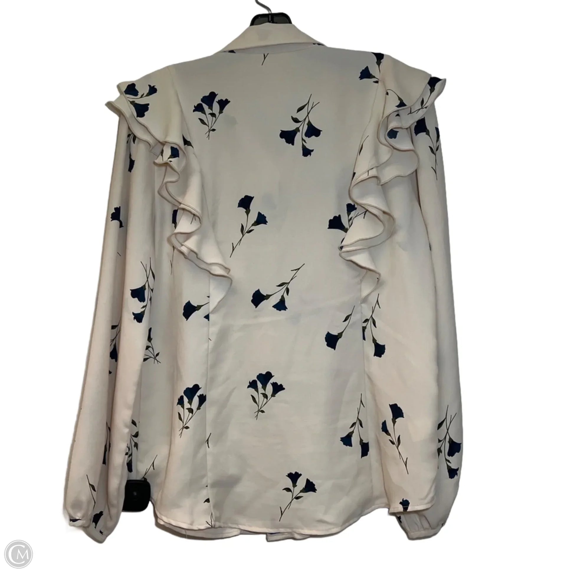 Blouse Long Sleeve By Ann Taylor In Blue & Cream, Size: S