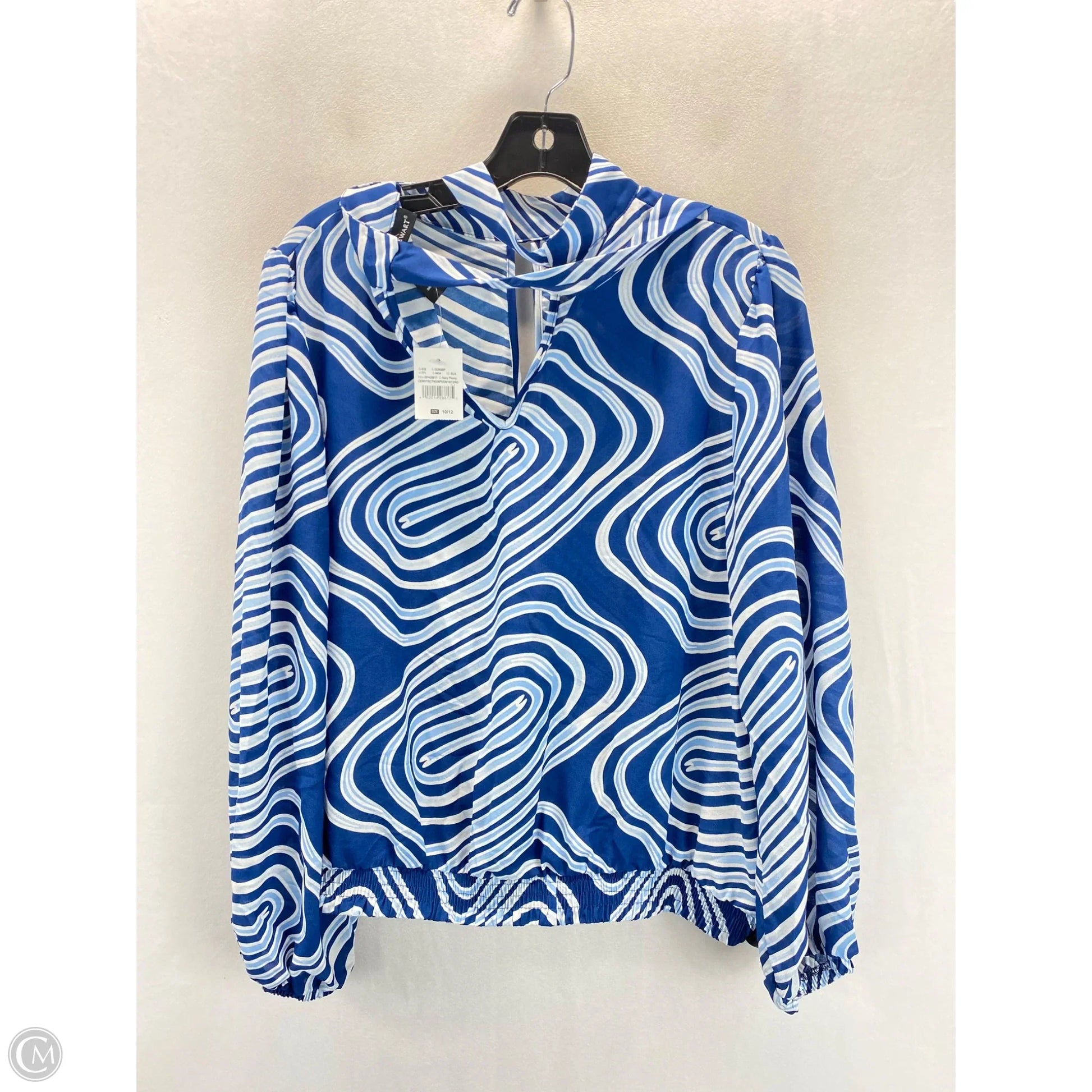 Blouse Long Sleeve By Ashley Stewart In Blue & White, Size: 12
