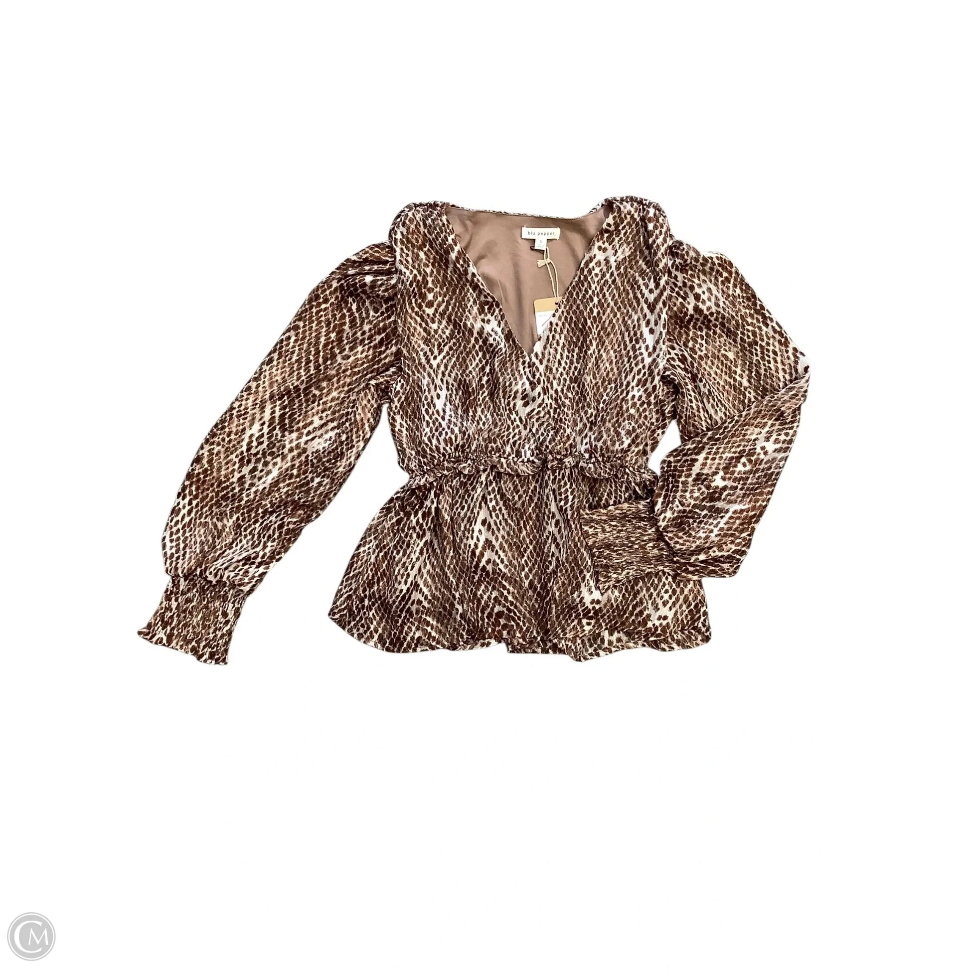 Blouse Long Sleeve By Blu Pepper In Brown, Size: S