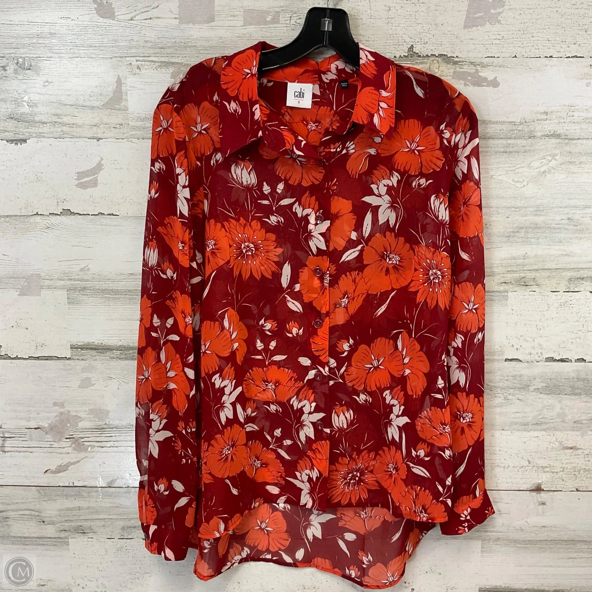 Indulge in Cabi's Orange Long Sleeve Blouse, Size S. Luxurious fabric drapes effortlessly, enhancing your elegance. Feel empowered in the impeccable fit, exuding confidence with every wear. Elevate your wardrobe today.