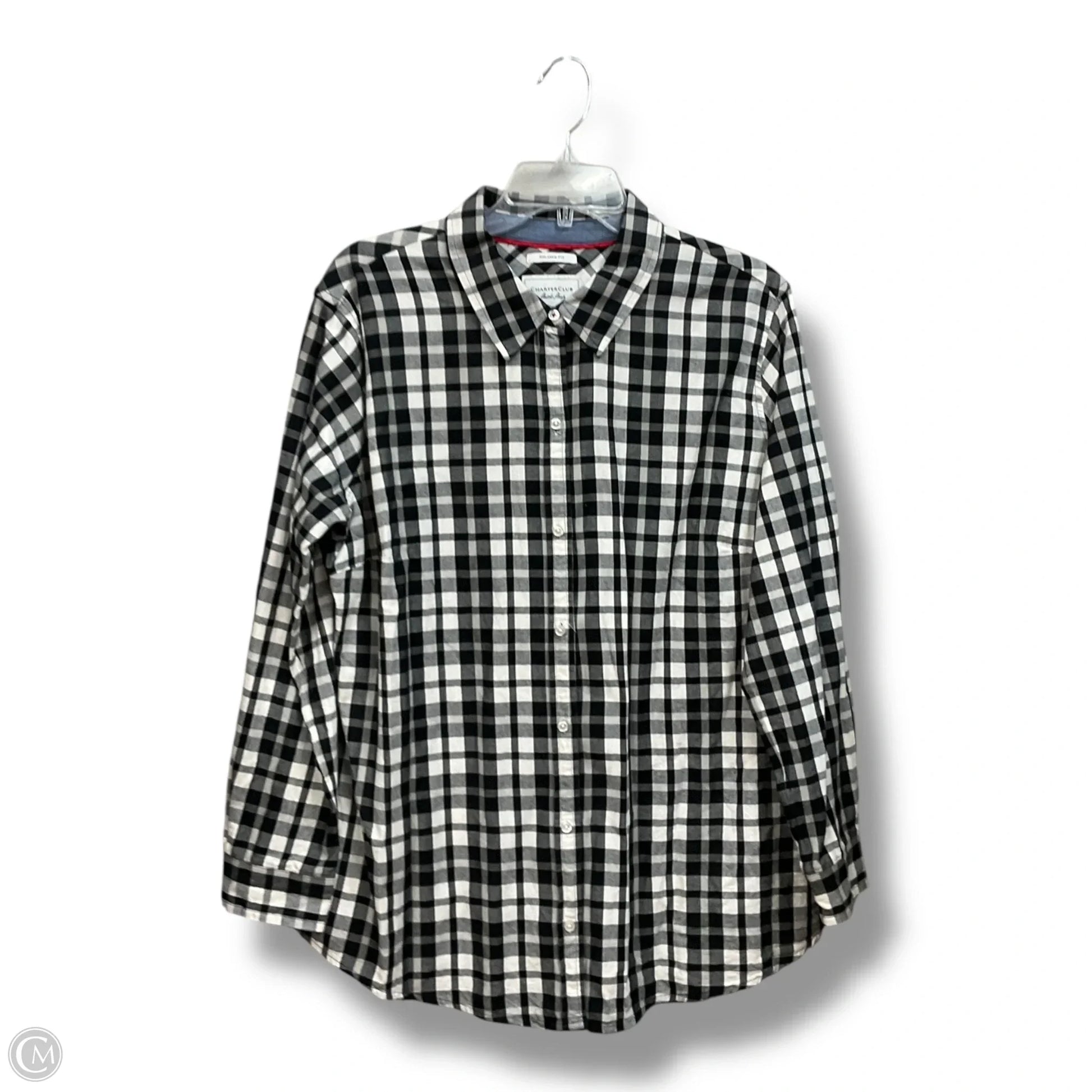Blouse Long Sleeve By Charter Club In Checkered Pattern, Size: Xxl