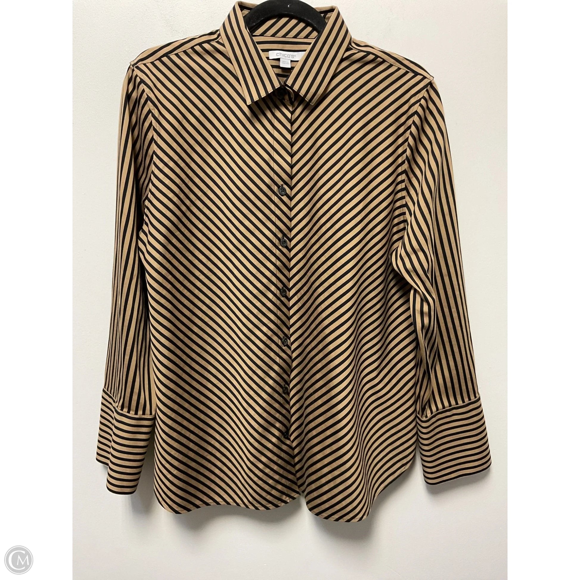 Blouse Long Sleeve By Chicos In Black & Gold, Size: L